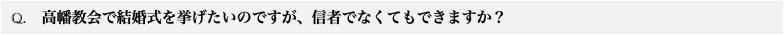 高幡教会は、2000年のキリスト教会の歴史と伝統を大切にしています。できるだけ多くの方々に、真の神様を知って、本当の結婚式を挙げて頂きたいと願っています。そのため、「結婚式の準備」ではなくて、「結婚の準備」をお手伝いしています。結婚の意味、結婚を支えて下さる神様のことを知って頂くようにアドバイスとお願いとをしています。